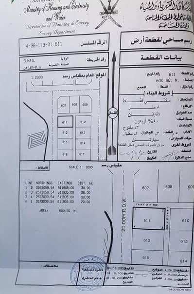فرصة رائعة لامتلاك أرض سكنية في منطقة نابضة بالحياة في سمائل، الظاهرية. القطعة بمساحة 600 متر مربع مثالية للاستثمار أو بناء منزل أحلامك. تعتبر الأرض مثالية لأولئك الذين يبحثون عن إنشاء مساحة سكنية مخصصة في بيئة هادئة. لا تفوت الفرصة للحصول على قطعة الأرض الخاصة بك في هذا الموقع المرغوب فيه.