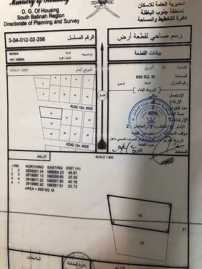 مرحبًا بكم في فرصة ممتازة للاستثمار في ارض سكنية تقع في منطقة بركة النابضة بالحياة، الباطنة. هذه القطعة المميزة من الممتلكات تمتد على 858 متر مربع، مما يتيح لك مساحة واسعة لبناء منزلك الأحلام أو القيام بمشروع تنموي مربح.