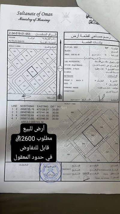 أرض سكنية للبيع في صحم، الباطنة