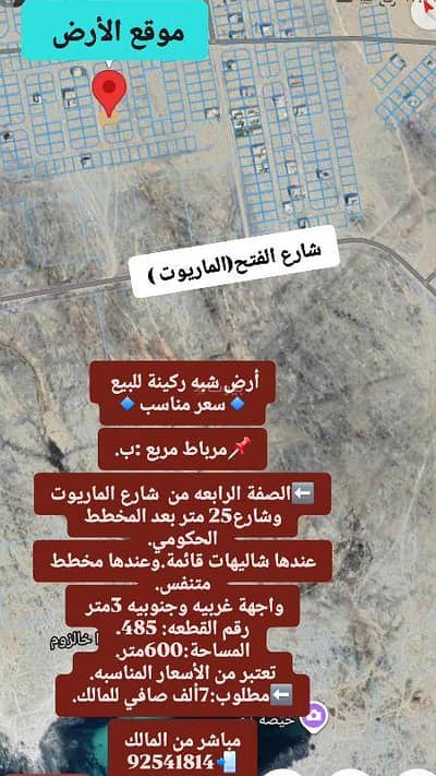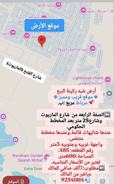 اكتشف فرصة استثنائية للاستثمار في أرض سكنية رئيسية تقع في المنطقة الخلابة لمرباط، ظفار. يمتد هذا العقار السخي حوالي 600 متر مربع وهو متاح للبيع بسعر جذاب يبلغ 7,000 ريال عماني. يقدم هذا العقار القماش المثالي لمنزلك المستقبلي أو مشروع الاستثمار الخاص بك.