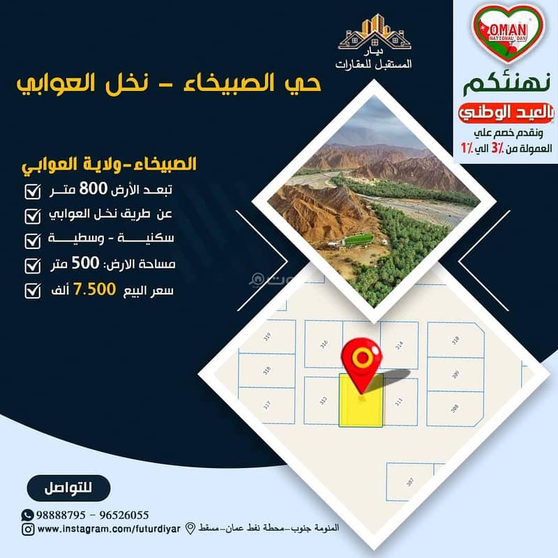 لا تفوت فرصة تأمين هذا العقار القيم في العوابي. اتصل بنا اليوم لمعرفة المزيد وترتيب مشاهدة. اتخذ الخطوة الأولى نحو امتلاك قطعة من الأرض يمكنك تطويرها كما ترغب والاستمتاع بنمط الحياة الحيوي الذي تقدمه الباطنة.