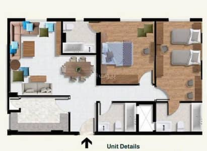 - **غرف النوم:** غرفتا نوم متناسبة تم تصميمهما لتعظيم المساحة والراحة.