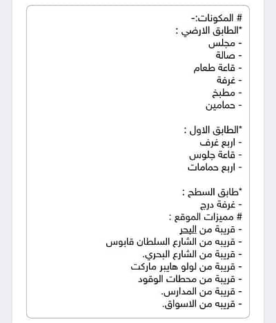 توفر هذه الفيلّا ليس فقط مساحة معيشية رائعة، ولكنها أيضًا فرصة للاستثمار في منطقة تزداد شعبية في مسقط. اغتنم هذه الفرصة واجعل هذه الفيلّا منزلك الجديد. اتصل بنا اليوم لمزيد من التفاصيل ولتنسيق عرض. لا تفوت هذه الفرصة الرائعة لامتلاك عقار جميل في السيب.