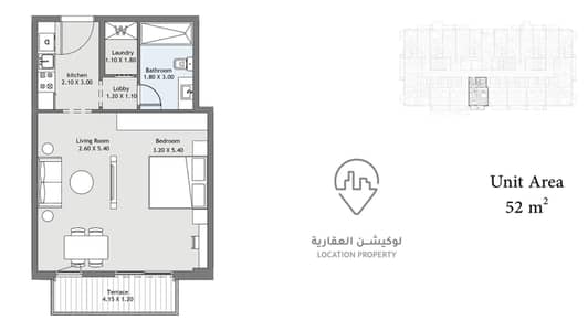 - مساحة إجمالية تبلغ 52 مترًا مربعًا، توفر مساحة معيشة مريحة وفعالة.