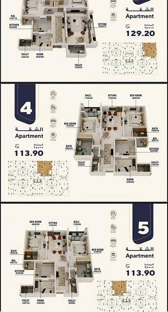 - **ثلاث غرف نوم:** تحتوي الشقة على ثلاث غرف نوم متوسطة الحجم، مما يوفر مساحة كافية للاسترخاء والخصوصية.
