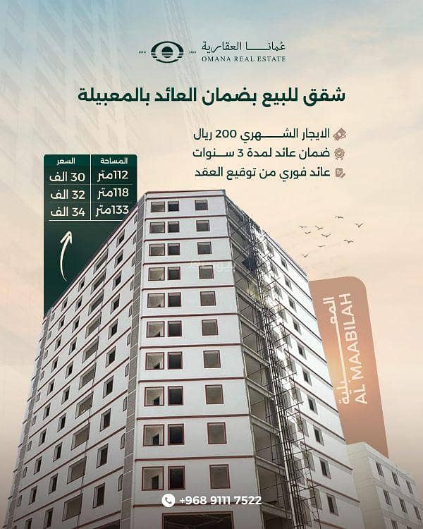 شقة من غرفتين للبيع في المعابيل، مسقط