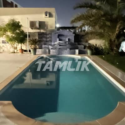 - مسبح خاص واسع يوفر مكانًا مثاليًا للاسترخاء من الحرارة، مثالي للسياحة العائلية والتنزه.