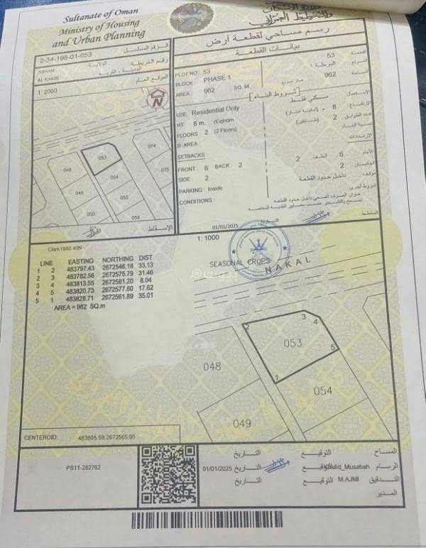 تتوفر الآن فرصة لشراء هذه الأرض السكنية في المنطقة المرغوبة بصحم، الواقعة في الباطنة. هذه الأرض تغطي مساحة واسعة تبلغ 962 مترًا مربعًا، وتوفر إمكانيات لا حصر لها لمنزلك المستقبلي أو مشروعك الاستثماري.