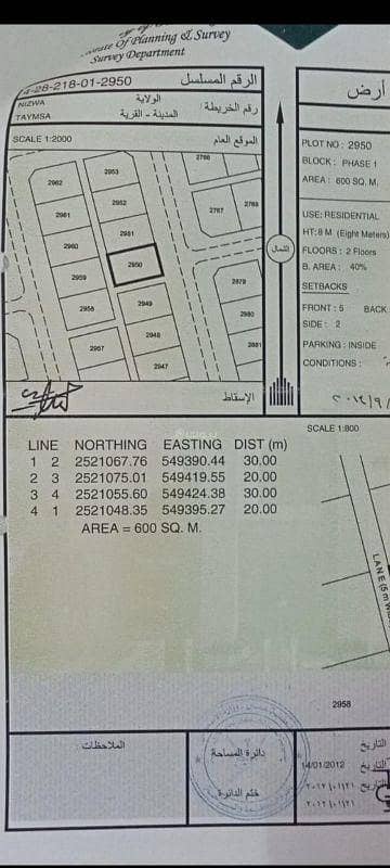 مرحبًا بكم في فرصة استثنائية للاستثمار في قطعة أرض سكنية في قلب نـزوى، الداخلية. تمتد هذه القطعة الواسعة لمساحة 600 متر مربع، مما يوفر مساحة واسعة لمنزلك المستقبلي أو مشروع تطويرك.