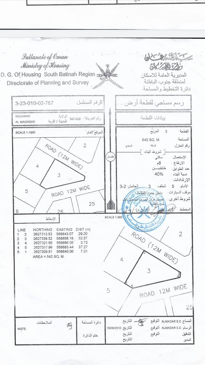 اكتشف الفرصة المثالية للاستثمار في هذه الأرض السكنية الواسعة الواقعة في منطقة المسنى المرغوبة في الباطنة. تمتد هذه القطعة على مساحة 642 مترًا مربعًا، وهي مثالية لبناء منزل أحلامك أو تطوير مشروع جديد. تقع الأرض في حي هادئ، مما يوفر بيئة هادئة بعيدًا عن صخب المدينة، مع سهولة الوصول إلى المرافق الأساسية.
