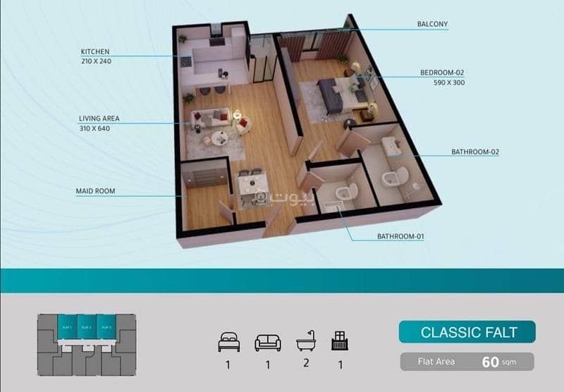 نرحب بك في منزلك الجديد في عزيبة، مسقط! هذه الشقة المكونة من غرفة نوم واحدة مثالية لأي شخص يبحث عن مساحة معيشة مريحة في موقع مناسب. تبلغ المساحة الإجمالية للشقة 60 مترًا مربعًا، مما يجعلها مرتبة بشكل جيد لتلبية احتياجاتك اليومية. إليك بعض الميزات والمرافق الرئيسية التي تجعل هذه الشقة خيارًا ممتازًا للمشترين المحتملين: