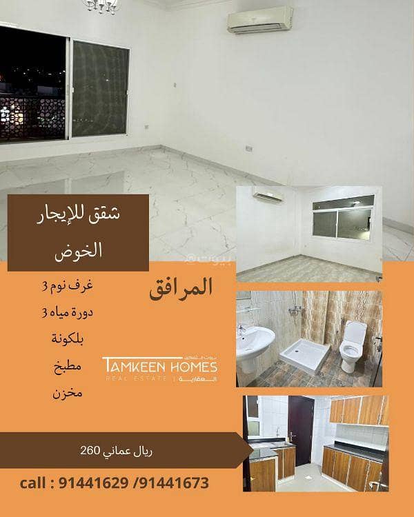 اطلب فيديوشقة من 3 غرف نوم للايجار في الخوض، مسقط