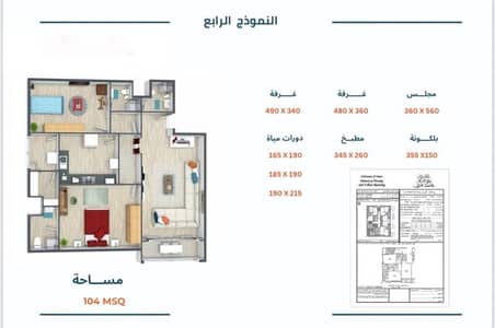 - **المساحة:** 104 متر مربع، توفر مساحة كافية لاحتياجات نمط حياتك.