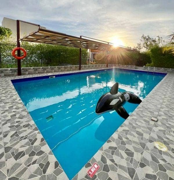 - **المساحة:** يغطي الشاليه مساحة سخية تبلغ 1200 متر مربع، مما يوفر الكثير من المساحة للترفيه والتجمعات.