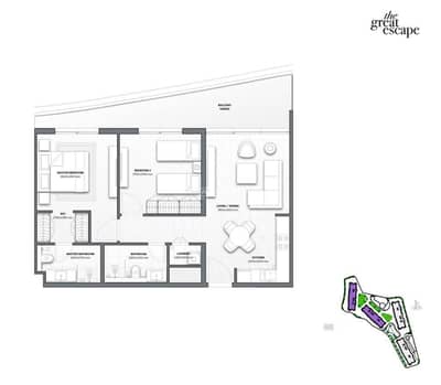 - تخطيط عملي مع غرفتي نوم وحمامين ومساحة معيشة مريحة