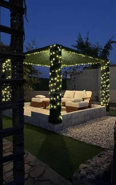 - المساحات الخارجية: حديقة تُزرع ومسطحات خضراء، مسبح خاص