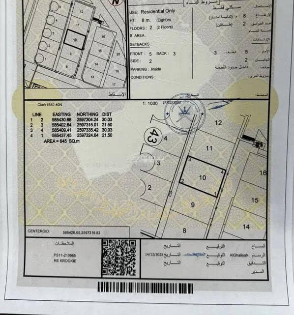 - مساحة الأرض: 645 متر مربع