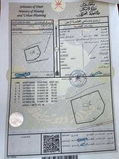 Discover a prime opportunity to own a substantial piece of residential land in the sought-after area of Adam, nestled within the beautiful Al Dakhiliya region. This expansive plot spans 9,675 square meters, presenting an ideal canvas for your future home or investment project.