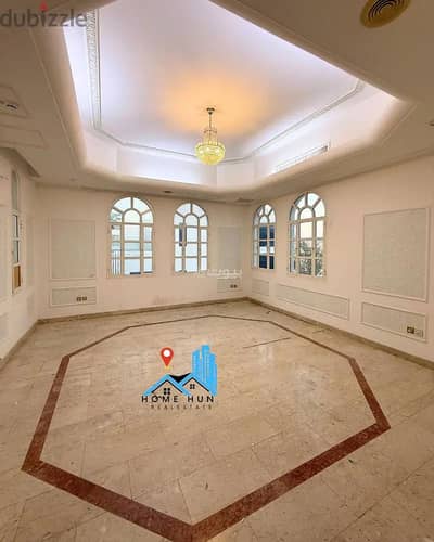 Discover this magnificent 9-bedroom villa available for rent in the desirable location of Madinat As Sultan Qaboos, Muscat. This spacious property features a well-planned design, suitable for large families or those seeking plenty of space. With 11 bathrooms, every bedroom has easy access and ensures convenience for residents and guests alike.