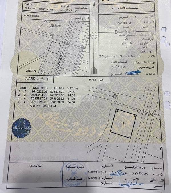 Discover the potential of this prime residential land for sale in Barka, located in the Al Batinah region. Covering an impressive area of 648 square meters, this property is perfect for those looking to invest in a future home or develop a new project.