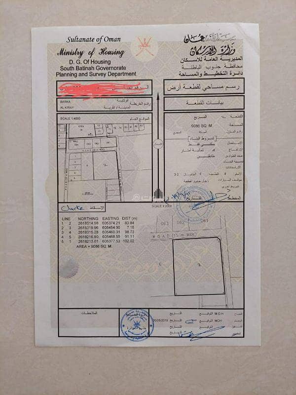 This is an excellent opportunity to invest in a residential land located in the vibrant region of Barka, Al Batinah. The plot spans an impressive area of 9086 square meters, providing ample space for your future family home or development project.