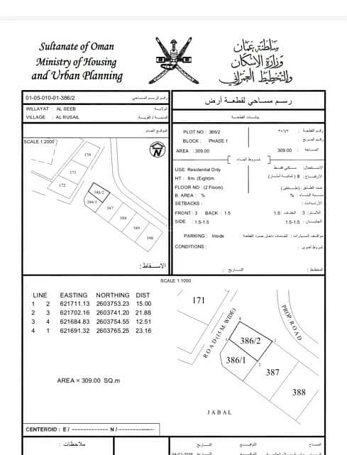 Presenting an exceptional opportunity to invest in a prime piece of residential land located in Al Rusayl, Muscat. This land spans across 309 square meters, providing ample space for your future dream home or a lucrative development project. Al Rusayl is a rapidly growing area, known for its strategic location and accessibility to major roads and amenities.