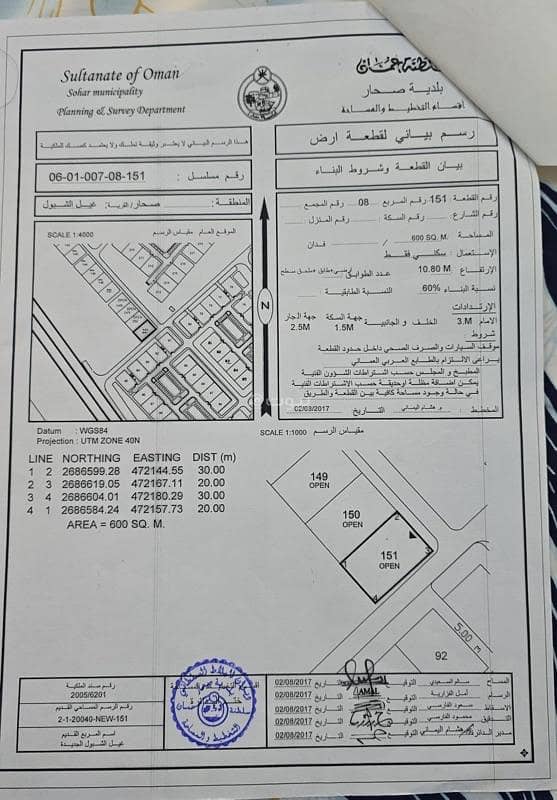 Introducing a prime residential land opportunity in Sohar, Al Batinah. This parcel is positioned in a growing area with easy access to local amenities and the surrounding communities, presenting an ideal canvas for investors and homebuilders alike. The plot spans 600 square meters, offering a flexible footprint suitable for various residential development plans according to applicable zoning regulations. Key details include: - Property type: Residential Land - Location: Sohar, Al Batinah - Area: 600 square meters (Square Meters) - Price: 16,700 Omani Rials (per the listing) - Furnished: Not applicable to land - Bedrooms: Not applicable - Bathrooms: Not applicable - Status: For Sale - Ownership: Clear title and transferable ownership upon completion of transactions The land is currently undeveloped, providing buyers the freedom to design a layout that fits their vision, whether for a standalone villa enclave, a family-oriented residential project, or a mixed-use development where permitted. The locality of Sohar offers a balanced lifestyle with proximity to local markets, schools, mosques, and community facilities, all within an accessible drive from major highways and urban centers. This property presents a compelling entry point for those looking to capitalize on Sohar’s continued growth and demand for housing. Whether you are an end-user seeking a strategic plot to build a family home or an investor aiming to optimize a future project, this land holds strong potential given its size and location. Inquiries are encouraged to discuss zoning, permissible uses, and any development guidelines that apply to this plot. Contact us to schedule a site visit, request additional documentation, or to initiate the purchasing process.