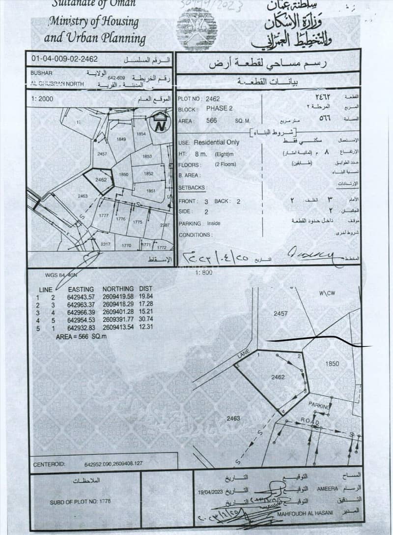 - The plot size at 566 sqm offers flexibility for residential building plans, subject to the relevant approvals from Muscat Municipality and other governing bodies.